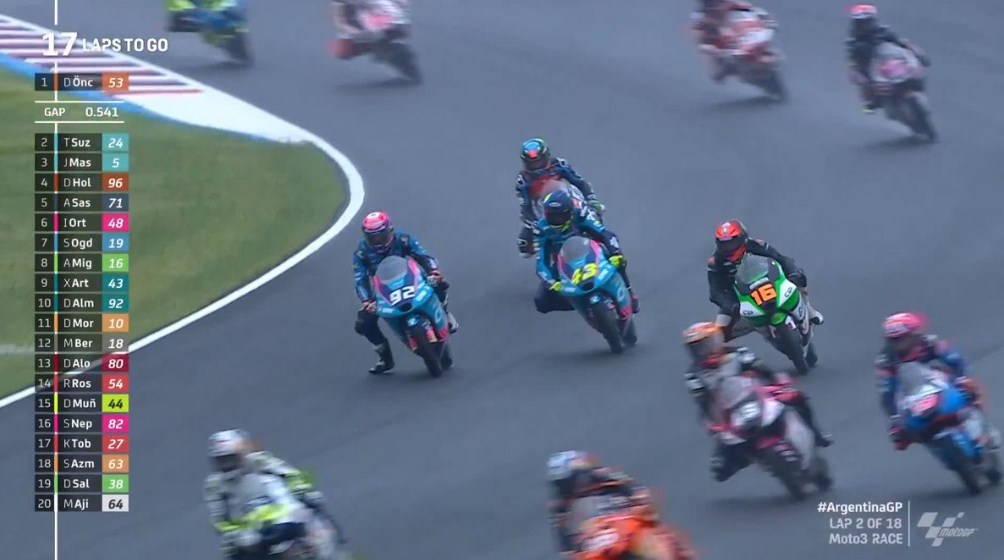 Argentina, NontonMotoGP — Pembalap muda Spanyol, Daniel Holgado masih bertahan di puncak klasemen sementara kelas Moto3 usai seri kedua di Argentina.