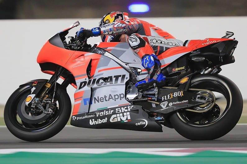 Ducati Andrea Dovizioso meraih kemenangan dalam balapan super ketat di MotoGP 2018 Qatar. mengalahkan juara bertahan Marc Marquez Honda yang hanya berjarak 0,027 detik.