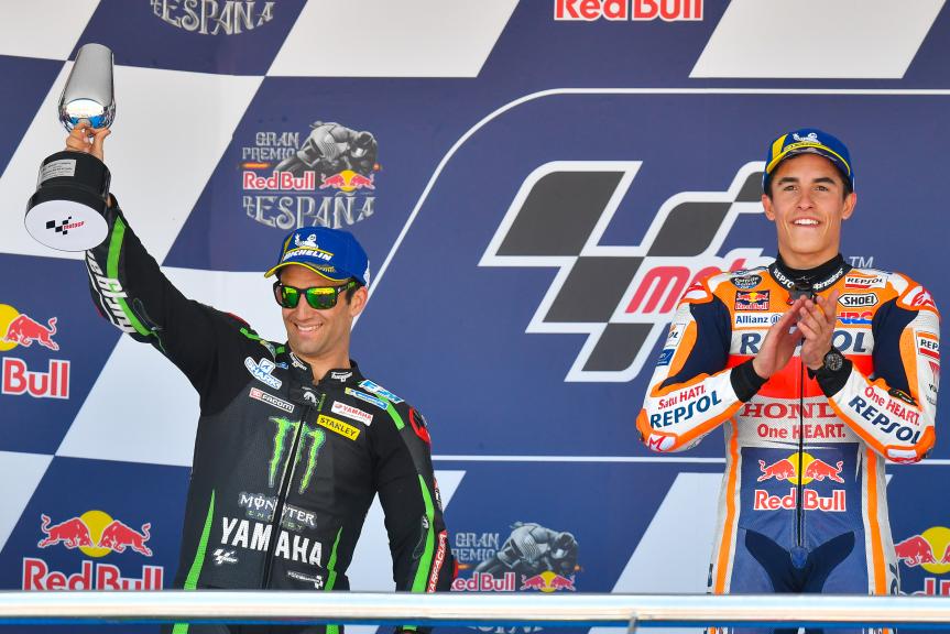 Sebaliknya, itu bintang satelit Johann Zarco yang bersaing dengan para pembalap Honda, tiga dari empat balapan musim ini milik Marc Marquez (2) dan Cal Crutchlow (1). Kemenangan lainnya adalah milik Ducati Andrea Dovizioso, dan Yamaha tanpa kemenangan selama hampir satu tahun.