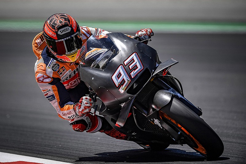 Marquez yang melakukan putaran sekitar 90 lap, mengambil posisi teratas dari pembalap Suzuki Ecstar Andrea Iannone dan motor yang digunakan terbungkus dengan livery hitam – tampaknya pengujian motor terfokus pada aerodinamis. Rekan setimnya Dani Pedrosa melakukan hampir 80 lap, dan dia berada diposisi ketujuh meski mengalami kecelakaan.