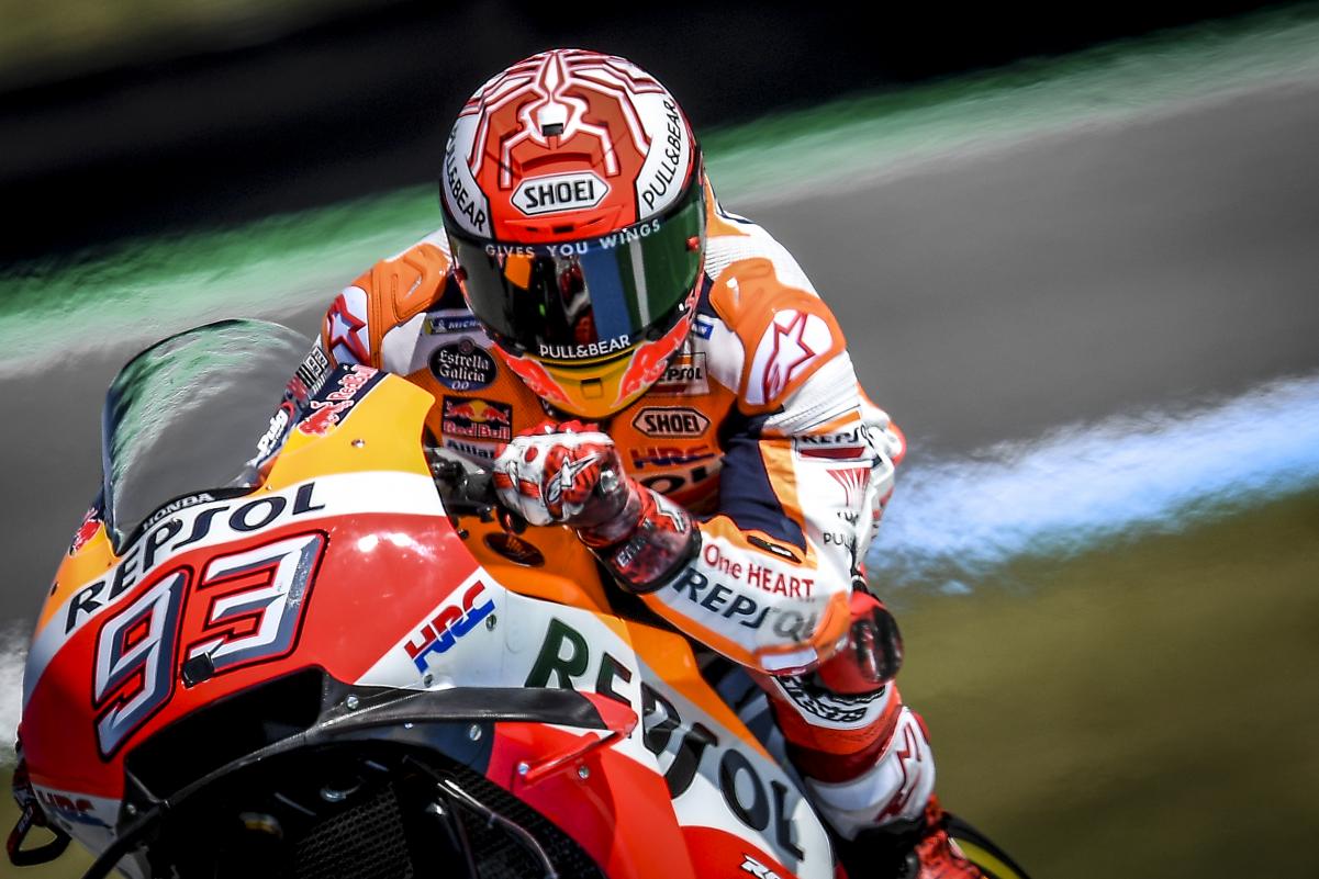 Juara dunia Marc Marquez menunjukkan kecepatan yang buruk saat memakai kombinasi ban hard / hard, menempatkannya di urutan kedelapan tanpa beralih dengan ban soft bagian belakang.
