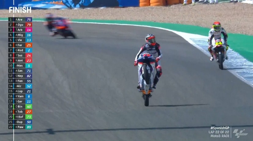 Podium kedua dan ketiga masi#ng-masing menjadi milik Ai Ogura (Honda Team Asia) dan Tony Arbolino (Rivacold Snipers Team)