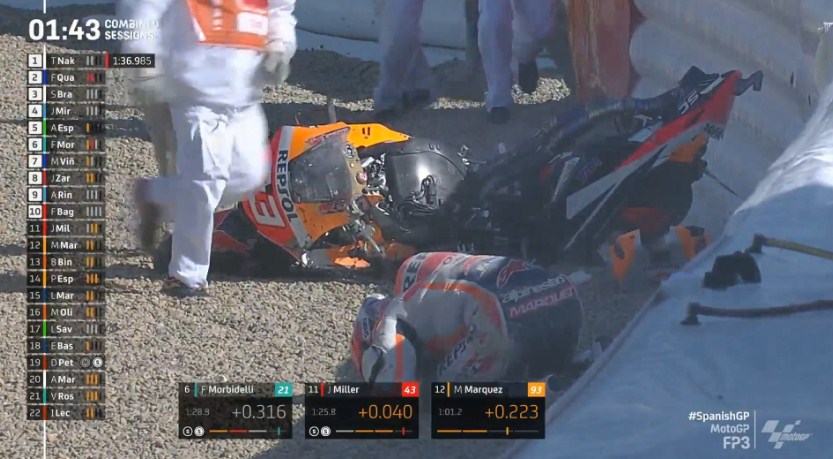 FP3 MotoGP Spanyol: Marquez Kecelakaan T7 Jerez, Begini Kondisinya