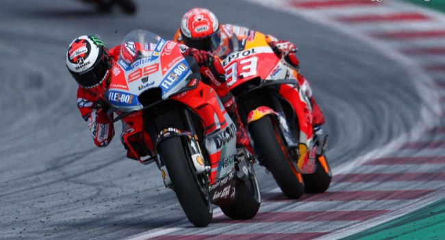 Jorge Lorenzo (Ducati Team) vs Marc Marquez (Repsol Honda) Race MotoGP Red Bull Ring, Austria 2018 / NontonMotoGP © MCNews Australia.