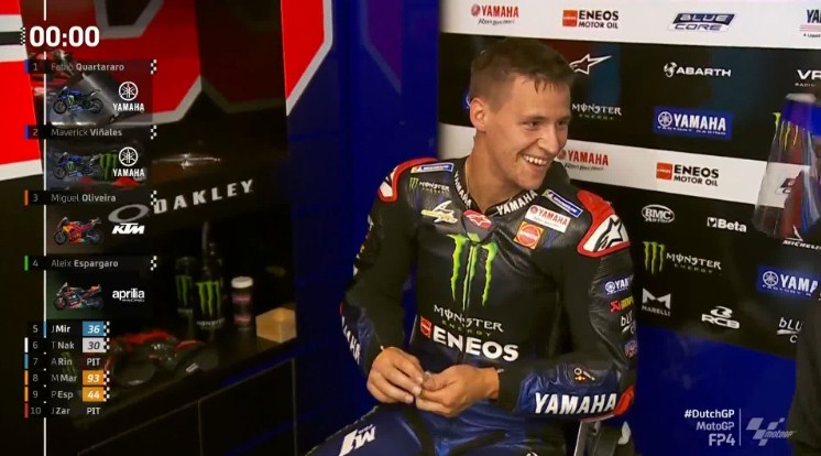 Fabio Quartararo kalahkan Maverick Vinales di sesi FP4 MotoGP Belanda, Marc Marquez kedelapan.