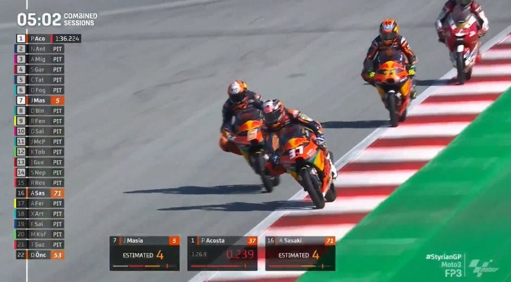 Spielberg, NontonMotoGP — Pembalap asal Jepang, Ayumu Sasaki, berhasil memimpin sesi Latihan Bebas ketiga Moto3 Styria.