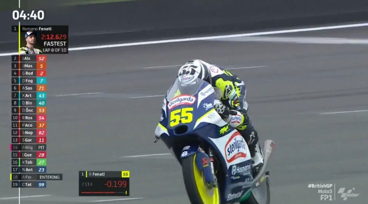 Silverstone, NontonMotoGP — Pembalap Italia, Romano Fenati, berhasil amankan posisi teratas di sesi Latihan Bebas pembuka Moto3 Inggris.