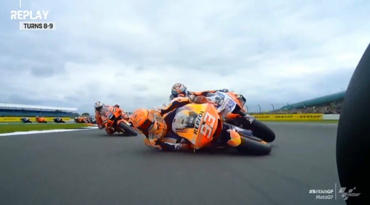 Keduanya jatuh di lap pembuka, pembalap Repsol Honda itu menyeret rookie Pramac Racing ke pinggir lintasan, keduanya tak dapat melanjutkan balapan.