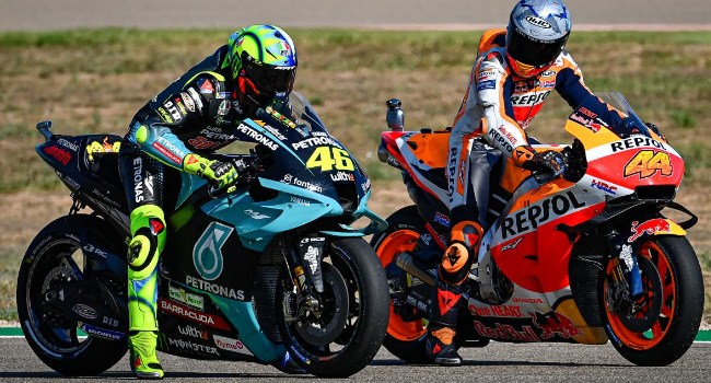 Valentino Rossi (Petronas Yamaha SRT) vs Pol Espargaro (Repsol Honda) MotoGP Aragon, Spanyol 2021 © MotoGP.