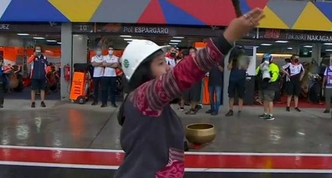 Dalam waktu singkat, Pawang Hujan ditempatkan di start/finish, seorang ‘dukun hujan’ wanita yang bertugas mengusir badai saat kilat, guntur, dan hujan monsun mengguyur lintasan GP sepanjang 4,3 km.