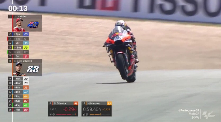Miguel Oliveira kembali memimpin sesi FP4 MotoGP Portugal, Marc Marquez ke-12.