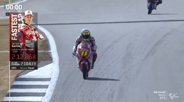 Rider Valresa GASGAS Aspar Team itu mencetak waktu lap terbaik 2 menit 12.868 detik di sirkuit Silverstone, Jum’at (5/8).