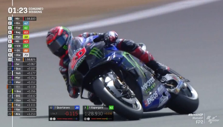 Fabio Quartararo tercepat di sesi FP2 MotoGP Inggris, Maverick Vinales ketiga.