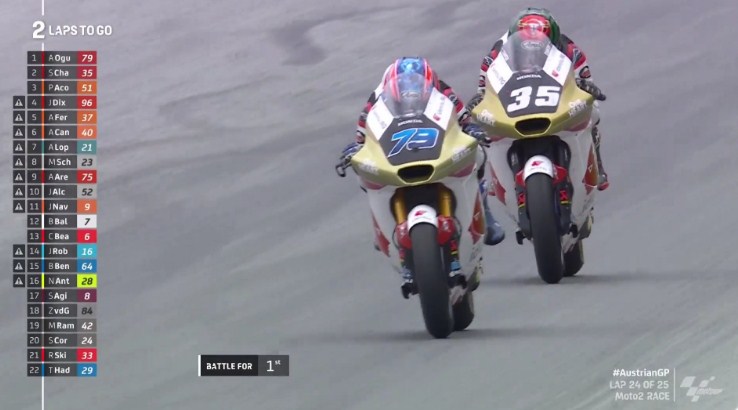 Ai Ogura (Idemitsu Honda Team Asia) vs Somkiat Chantra (Idemitsu Honda Team Asia) Race Moto2 Red Bull Ring, Austria 2022 / NontonMotoGP © Twitter/MotoGP.