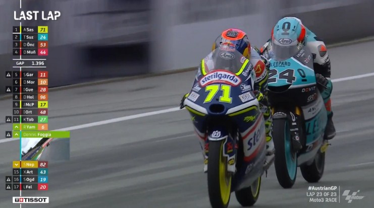 Deniz Oncu (Red Bull KTM Tech3) dan Sergio Garcia (ValresaGASGAS Aspar Team) masing-masing finis keempat dan kelima.