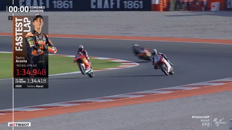 Valencia, NontonMotoGP — Rider tuan rumah, Pedro Acosta amankan posisi tercepat di sesi Latihan bebas kedua Moto2 Valencia.