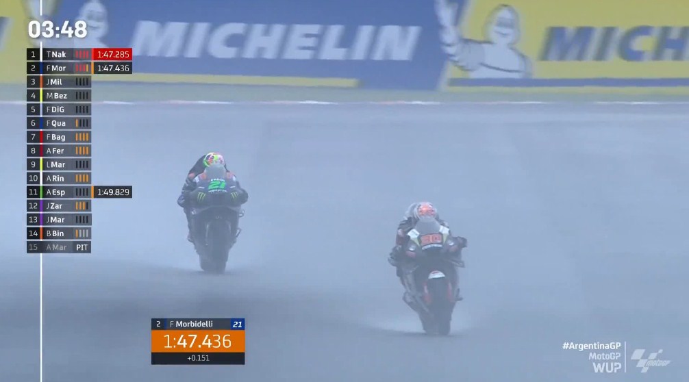 Bintang Satelit Mooney VR46 Racing itu mencetak lap cepat 1 menit 45.354 detik dalam kondisi hujan di Las Termas.