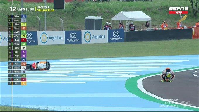 Mir terjatuh di lap pertama sirkuit Termas, itu adalah kecelakaan tunggal, tidak melibatkan pembalap lain.