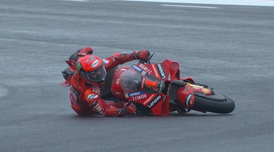 Komentar Bagnaia tidak sesuai dengan telemetri motor, dimana menurut data Baganai terjatuh karena melebar 30 cm dari racing line ideal, dia melintasai area kotor sirkuit yang jarang dilalui ban motor.