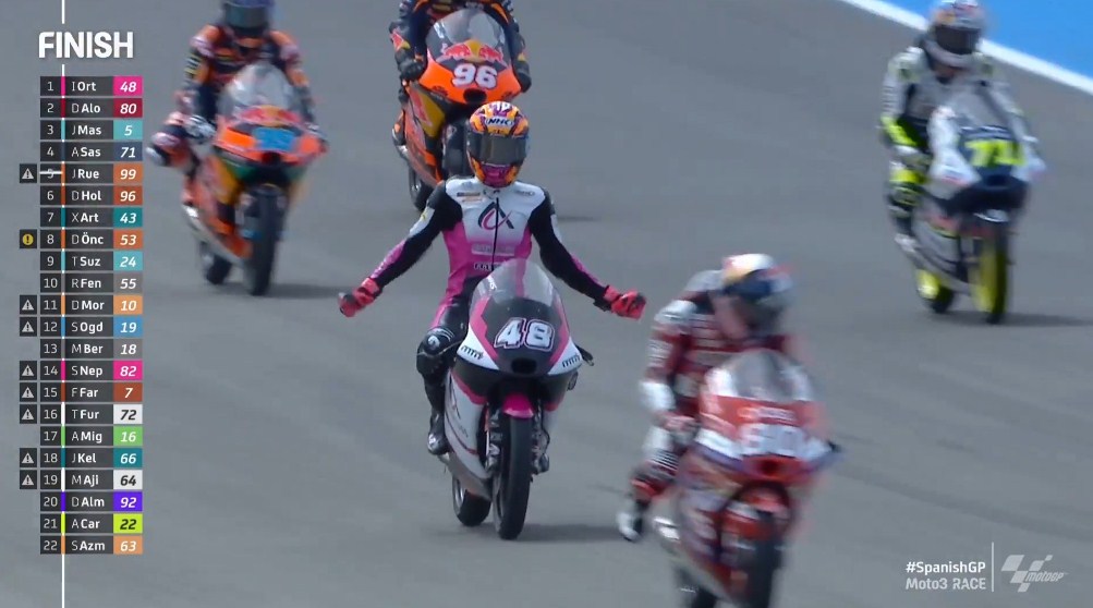 Ivan Ortola mengalahkan David Alonso dan Jaume Masia dalam balapan Moto3 Spayol, Mario Aji finis ke-19.