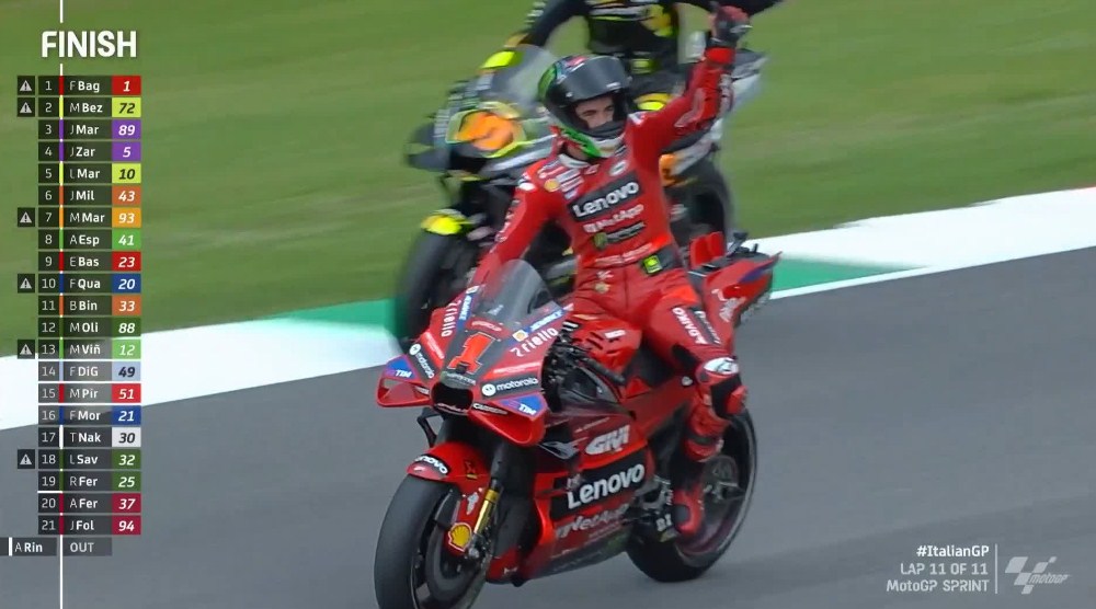Francesco Bagnaia kalahkan Marco Bezzecchi dalam Sprint Race MotoGP Italia, Marc Marquez finis ketujuh.