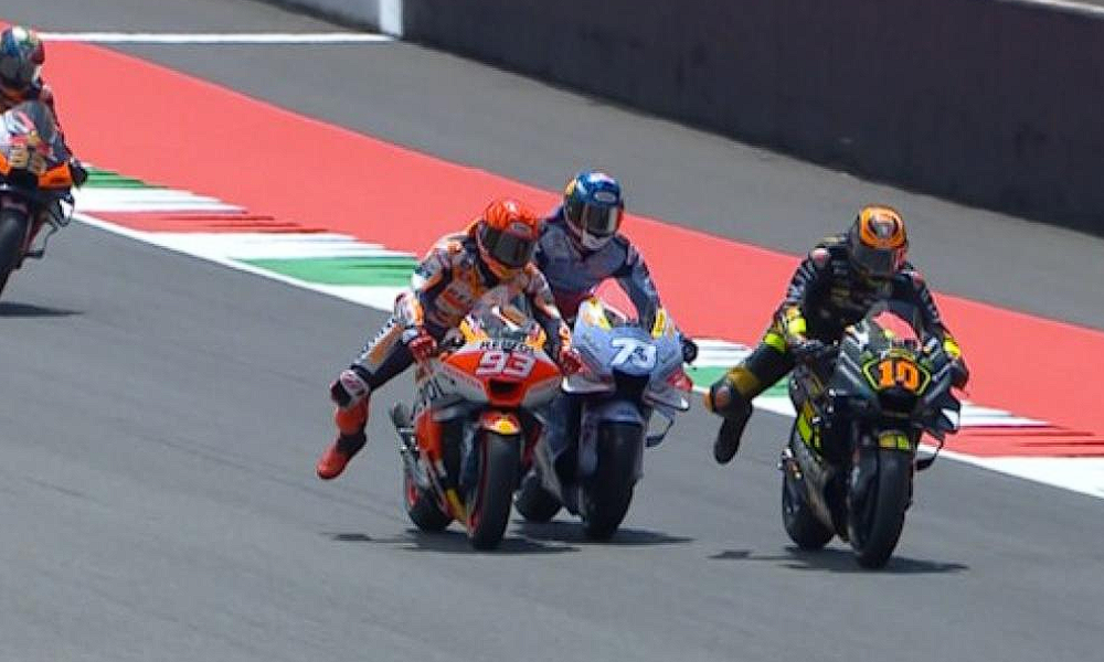 Marc Marquez (Repsol Honda) vs Alex Marquez (Gresini Racing) vs Luca Marini (Mooney VR46 Racing) Race MotoGP Mugello, Italia 2023 / NontonMotoGP © MotoGP.
