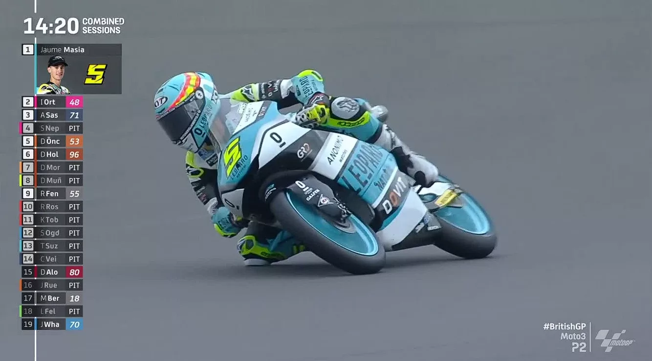 Silverstone, NontonMotoGP — Pembalap Spanyol, Jaume Masia mengambil alih posisi terdepan sesi Latihan 2 Moto3 Inggris.