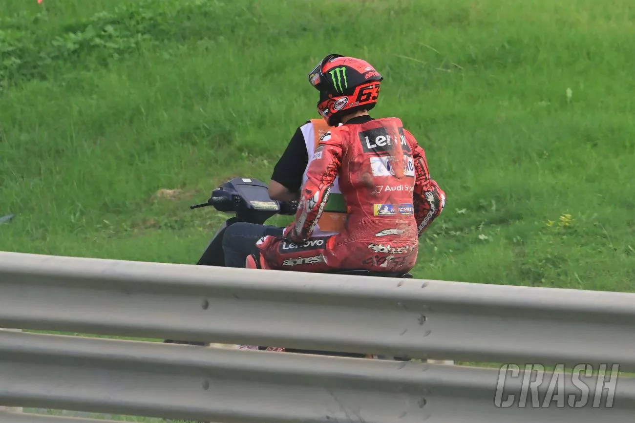 Terlihat frustrasi saat dia meninggalkannya, Bagnaia adalah satu-satunya pembalap yang menggunakan ban depan keras daripada ban medium.