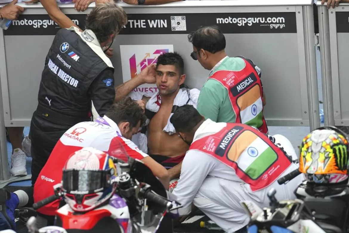 Dia mengatakan hal itu kepada Gino Borsoi, kepala timnya, yang harus membawanya seperti kruk ke area tertutup. Dia meminta air dan menuangkan air ke kepalanya. Suhu sangat panas di sirkuit Buddh. Dengan suhu udara 33 derajat Celsius, sensasi panas 39 derajat Celsius, dan kelembaban 61%, kondisi untuk para pembalap sangat sulit. Begitu tiba di sana pada hari Kamis, mereka menyadari bahwa mereka akan menderita akhir pekan ini. Oleh karena itu, mereka meminta agar jumlah putaran di sirkuit dikurangi dari 24 menjadi 21. Namun, tetap saja sulit.