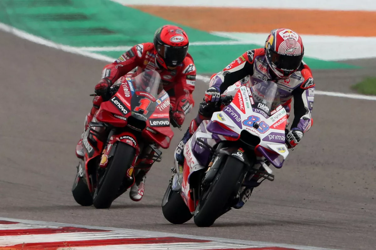 Yang menarik adalah keduanya berkompetisi dengan Ducati Desmosedici GP23. Perbedaannya adalah Bagnaia adalah bagian dari tim pabrikan, sedangkan Martín berada di tim satelit (Prima Pramac).
