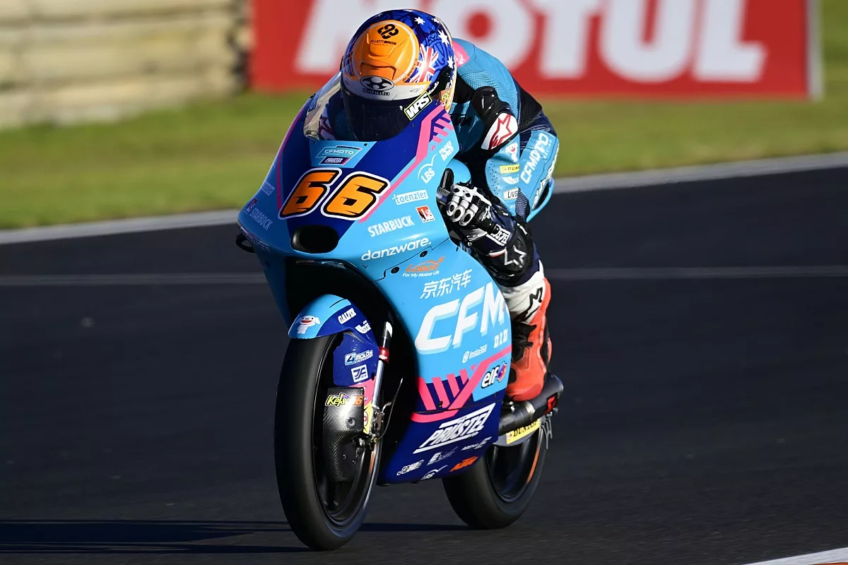 Di awal sesi, Kelso nyaman di tiga besar bersama Holgado dan Deniz Oncu. Pembalap Turki itu kembali berpartisipasi dalam latihan ketiga setelah sempat mengalami kecelakaan parah di sesi sebelumnya. Ia bertahan di atas motornya dengan rasa tidak nyaman. Jaume Masia, sang juara dunia Moto3, tertahan di peringkat keenam, di belakang Adrian Fernandez dan Ivan Ortola. Hingga 15 menit awal, tidak ada perubahan dalam 14 teratas.