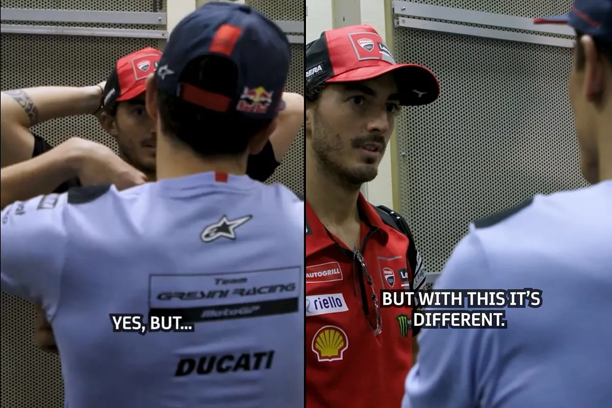 Percakapan yang disebut “sustanciosa” ini terjadi ketika Pecco Bagnaia, yang juga merupakan juara bertahan, bertanya kepada Marc Márquez tentang kesan pertamanya dengan motor Ducati. Marc pun menjawab dengan singkat, “Es diferente”, yang artinya motor Ducati memiliki perbedaan yang cukup signifikan dibandingkan dengan motor Honda yang biasa ia kendarai.