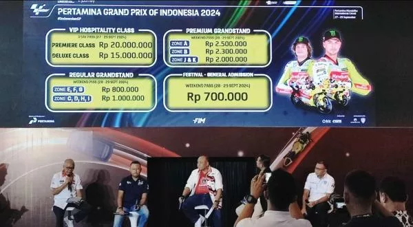 Para pecinta balap MotoGP di Tanah Air pasti sudah tak sabar menantikan gelaran MotoGP Mandalika 2024. Setelah menunggu dengan penuh antusiasme, akhirnya Direktur Utama Mandalika Grand Prix Association (MGPA), Priandhi Satria, mengumumkan harga tiket untuk MotoGP Mandalika 2024.