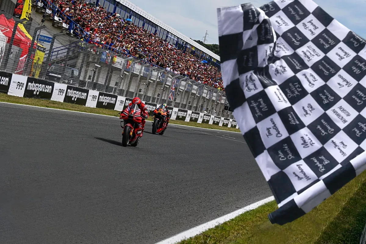 Semua ini dapat dilakukan di situs web ini: https://motogpauthentics.com/products/own-the-chequered-flag-motogp-jerez-2024. Harganya adalah 229 euro.
