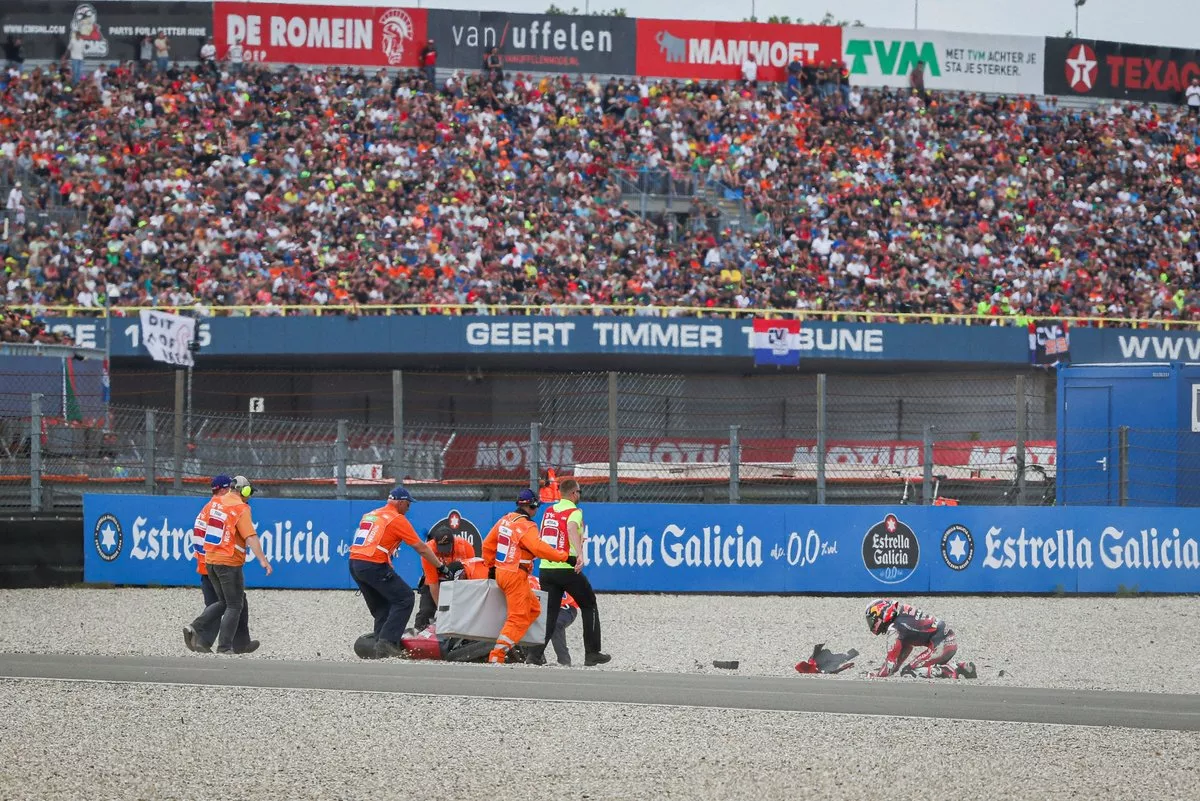 Pedro Acosta menunjukkan performa kompetitif sepanjang balapan di Assen. Bersama grup kedua, ia gigih memperebutkan posisi ketiga di belakang Francesco Bagnaia dan Jorge Martin yang tak terkalahkan. Meskipun demikian, pada lap terakhir, nasib sial menimpanya saat ia terjatuh akibat ban depan yang terlalu dingin.